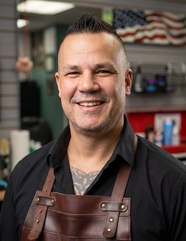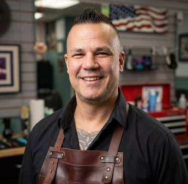 Andy joined The Combover team in January 2025, bringing with him over two decades of barbering experience. He divides his time between the Angola and Ashley locations. While skilled in a variety of styles, Andy particularly excels in traditional men's cuts and flattops. He continuously refines his skills, even in techniques outside his preferred classic styles, such as the burst fade. Before his career as a barber, Andy is a Purdue University alumnus and owned a trucking company that specialized in hauling fuel and heavy equipment. Outside of the shop, Andy is an avid motorcyclist and enjoys camping.
